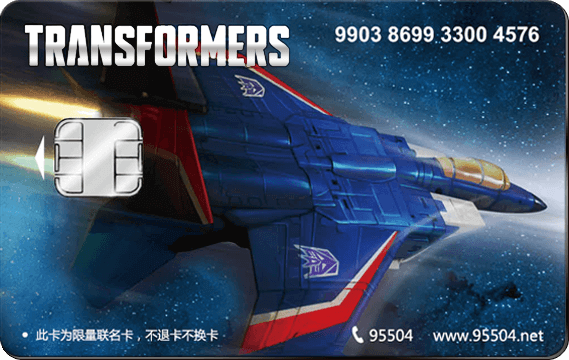 本系列產(chǎn)品人物形象由美國孩之寶公司授權(quán)的歐洲設(shè)計團隊構(gòu)思設(shè)計,采用黑色鏡面卡基,從而展現(xiàn)了機器人的力量感與酷炫感。卡樣背面”TRANSFORMERS”字樣采用獨特的立金技術(shù),均由手工粘貼而成,每一張卡都是獨一無二的,同時配以高端白金信用卡使用的稀有銀色芯片,這些都使其更具科技韻味。