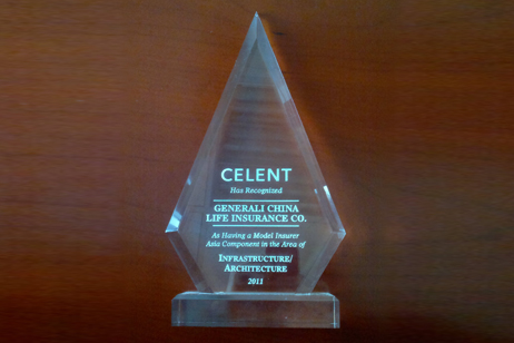 中意人壽保險(xiǎn)有限公司因領(lǐng)先的信息系統(tǒng)架構(gòu)和集成化系統(tǒng)平臺(tái),被國(guó)際知名的研究與咨詢(xún)公司賽訊(Celent)授予“2011 年度亞洲保險(xiǎn)公司典范獎(jiǎng)”。