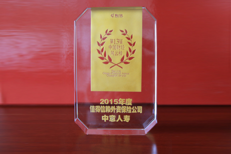 中意人壽榮獲 “2013年21世紀(jì)亞洲金融年會(huì)-21世紀(jì)保險(xiǎn)年會(huì)”頒發(fā)的“2013年度穩(wěn)健經(jīng)營(yíng)獎(jiǎng)”,這是第四次獲獎(jiǎng),也是本屆唯一獲獎(jiǎng)的合資保險(xiǎn)公司。