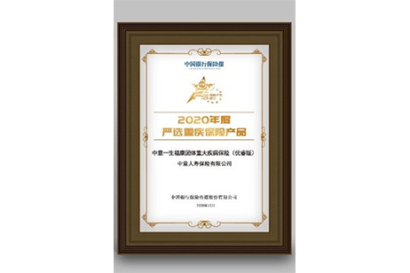 中意一生福康團(tuán)體重大疾病保險(xiǎn)(優(yōu)睿版)獲得中國(guó)銀行保險(xiǎn)報(bào)“2020年度嚴(yán)選重疾保險(xiǎn)產(chǎn)品”