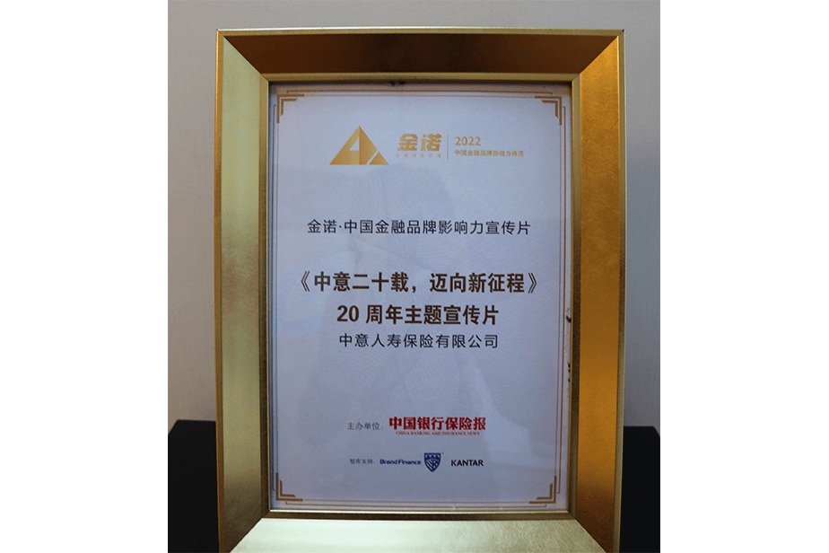 《中意二十載 邁向新征程》榮獲2022“金諾·中國(guó)金融品牌影響力宣傳片”