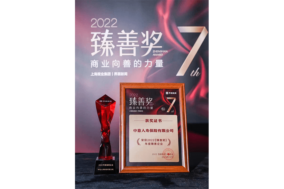中意人壽榮獲2022臻善獎(jiǎng)“年度臻善企業(yè)”獎(jiǎng)項(xiàng)