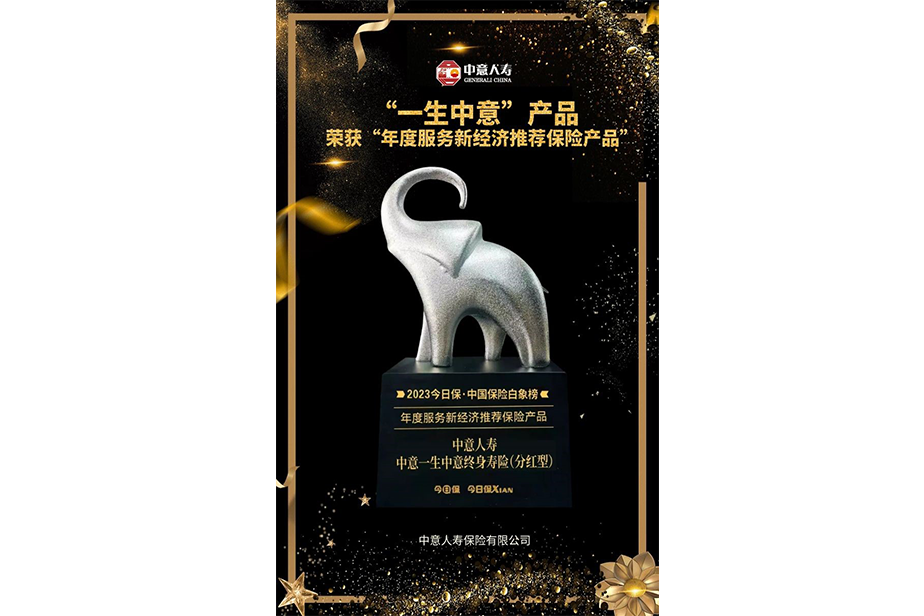 “中意一生中意終身壽險(xiǎn)(分紅型)”榮獲“2023今日保·中國(guó)保險(xiǎn)白象榜”“年度服務(wù)新經(jīng)濟(jì)推薦保險(xiǎn)產(chǎn)品”獎(jiǎng)