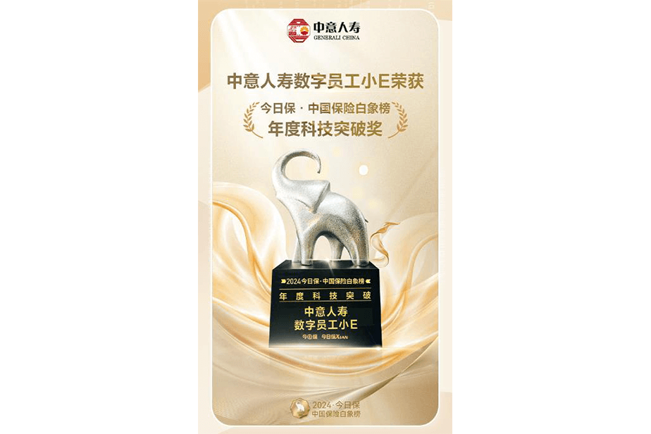 中意人壽數(shù)字員工小E榮獲今日保·中國(guó)保險(xiǎn)白象榜年度科技突破獎(jiǎng)