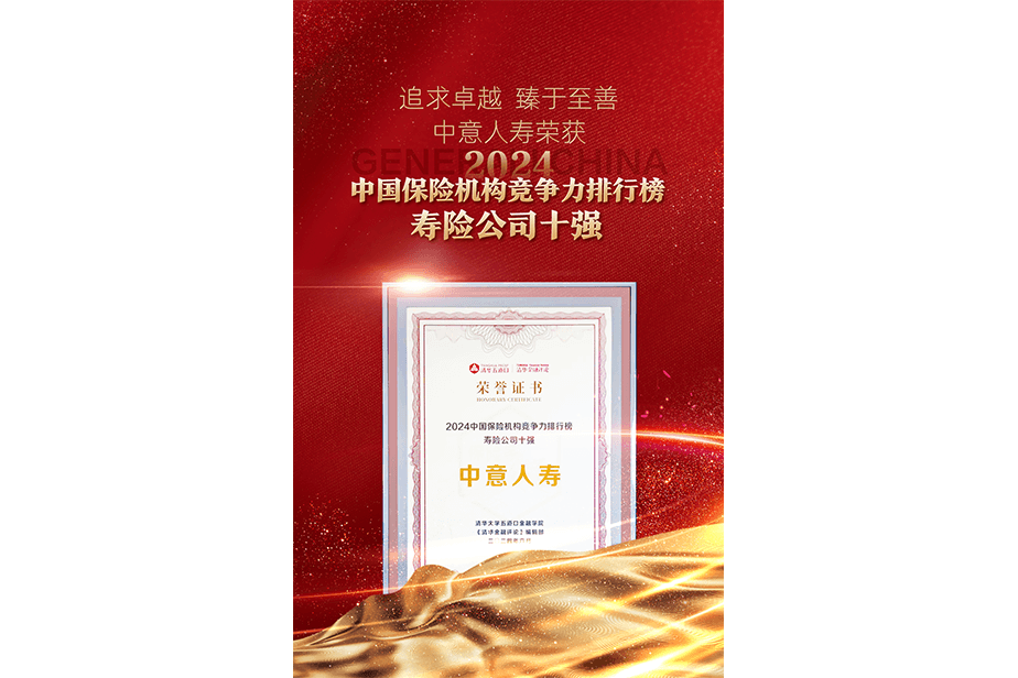中意人壽榮獲2024中國(guó)保險(xiǎn)機(jī)構(gòu)競(jìng)爭(zhēng)力排行榜壽險(xiǎn)公司十強(qiáng)