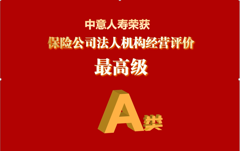 2024年12月31日,中國保險業(yè)協(xié)會公布了2023年度保險公司法人機構(gòu)經(jīng)營評價結(jié)果。中意人壽保險有限公司(簡稱中意人壽)獲評人身險A類公司,彰顯了公司長期穩(wěn)健經(jīng)營的積極發(fā)展態(tài)勢和良好的業(yè)務(wù)品質(zhì)與價值。