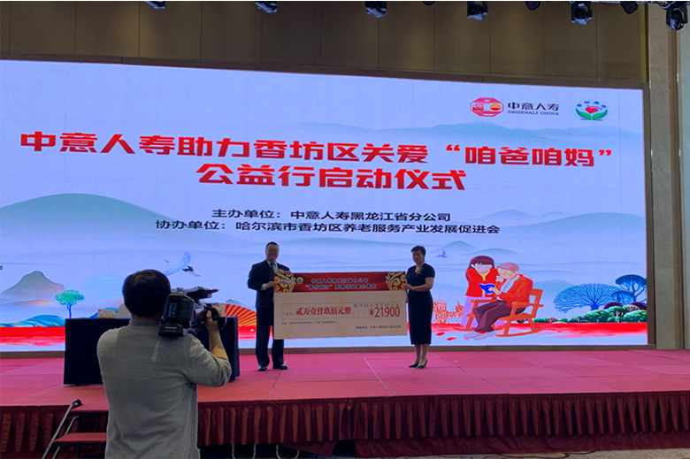 為傳承新時代中華民族的孝道品德、孝道文化和敬老愛老的美好品行,用新時代中國特色社會主義偉大旗幟引領社會廣大愛心企業的愛心行動,踐行社會主義核心價值觀,凝聚社會慈善公益大愛的力量,共同托起困難老年人的幸福生活,把黨的溫暖和關懷送到困難老年人的身邊,中意人壽黑龍江省分公司主辦,哈爾濱市香坊區養老服務產業發展促進會協辦“善傳龍江”慈善公益活動,助力香坊區2019關愛《咱爸咱媽》公益行活動。活動于2019年5月28日正式啟動,并完成首次捐贈。