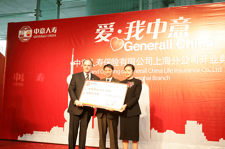 2008年5月12日,8.0級的強烈地震襲擊了四川汶川。消息傳來,中意人壽向受災較為嚴重的四川省廣漢市興隆鎮伸出了援手——捐助50萬元用于興隆鎮中心小學的重建,重建后的小學將更名為廣漢市興隆鎮“中意希望小學”。2009年12月2日,“中意希望小學”捐贈暨奠基儀式隆重舉行。時任中意人壽總經理易思樂代表公司向小學捐贈了善款及200套嶄新的書包和文具。2010年,重新修建的教學樓在校園內矗立起來,它高達4層,建筑面積2200平方米,可容納700余名學生就讀,并設有多媒體教室等先進教學設施,極大地改善學校的基礎教育條件。2010年11月18日, “中意希望小學”新教學樓啟用暨捐贈儀式隆重舉行。在啟用儀式現場,中意人壽還向希望小學捐贈了電腦等一批教學設備和籃球、乒乓球拍、羽毛球拍、棋類等體育用品。