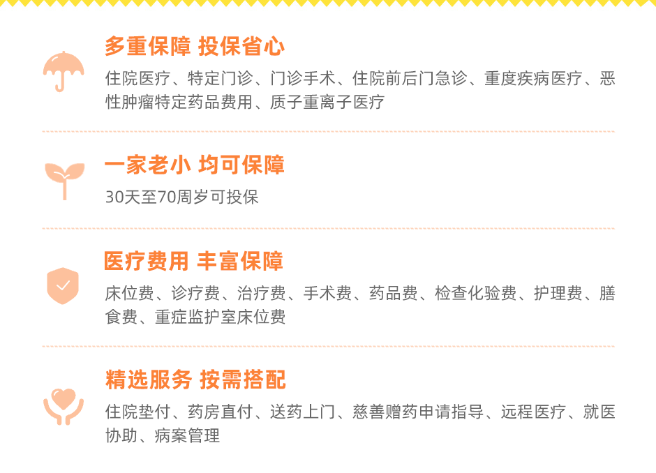投保年齡:本合同接受的投保年齡為出生滿30天至70周歲,可續保至105周歲